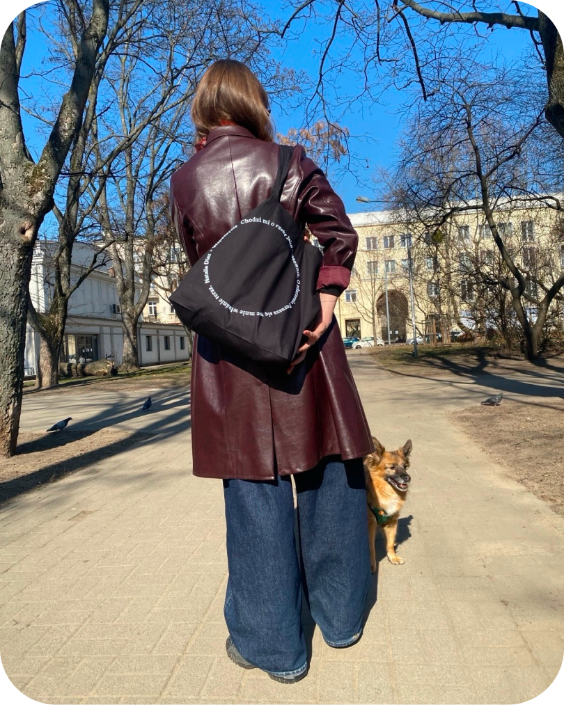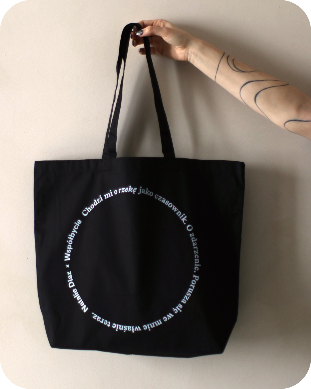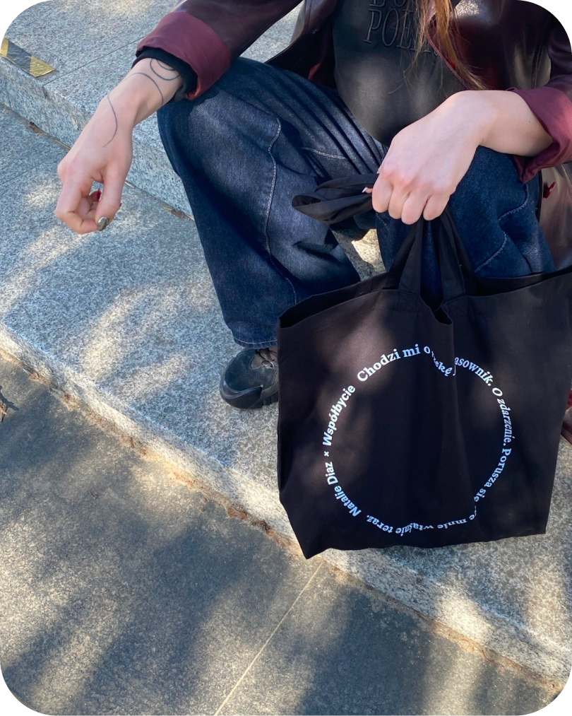 Bawełniana torba z cytatem z wiersza Natalia Diaz w kolorze błękitnym. Nadruk wykonany metodą sitodruku.